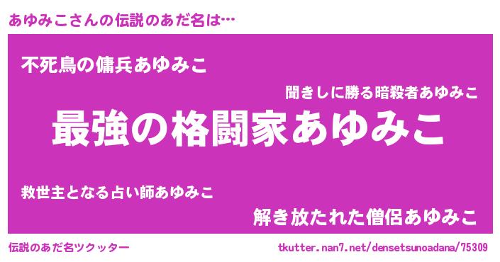 | ヒーロー風カッコイイあだ名 | 『ウルトラあゆみこマン』『銀牙騎士アユ』 |