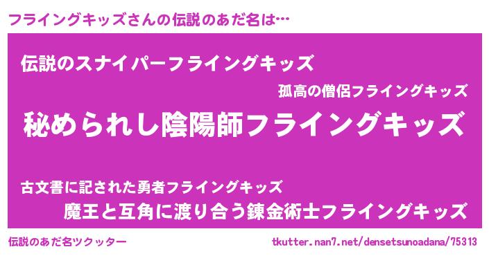 | 女子向けラノベタイトル風あだ名 | 『フライングキッズの雑貨屋さん』 |