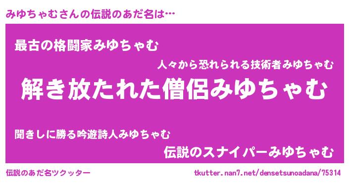 | ヒーロー風カッコイイあだ名 | 『銀牙騎士ミユ』『仮面ミユダー』 |