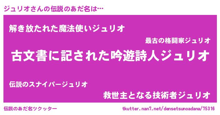 | ヒーロー風カッコイイあだ名 | 『ネオジュリオ』『幻影騎士ジュ』 |