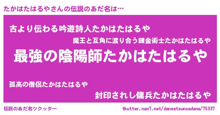 | ファンタジー風あだ名 | 『エターナルタカハタハルヤー』 |