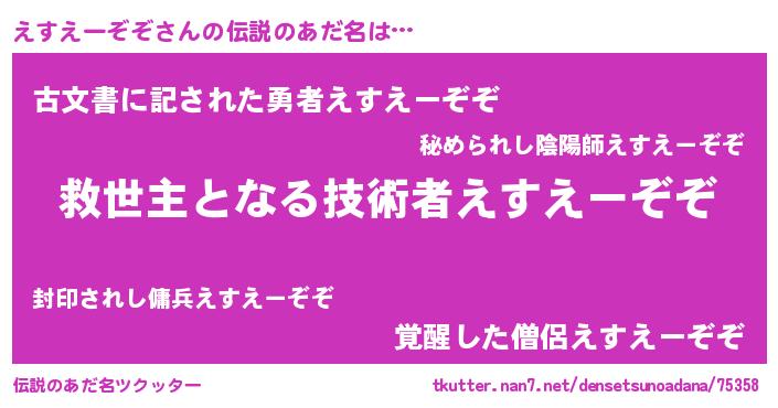 | 男性向けラノベタイトル風あだ名 | 『この素晴らしい世界にえすえーぞぞを!』 |