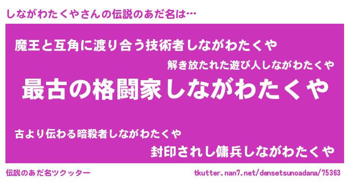 | 意味不明あだ名 | 『自称しながわたくや』 |