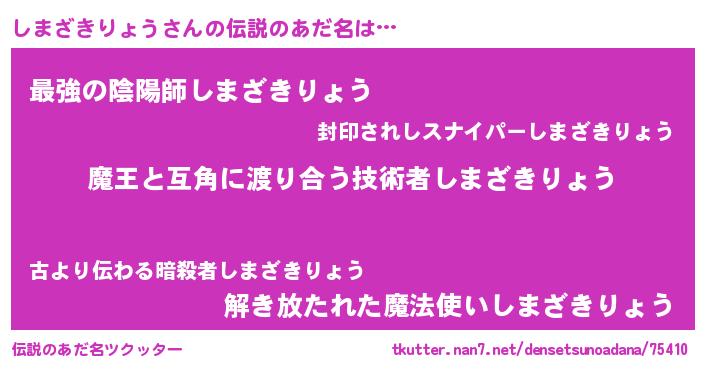 | 男性向けラノベタイトル風あだ名 | 『おまえをオタクにしてやるから、俺をしまざきりょうにしてくれ! 』 |