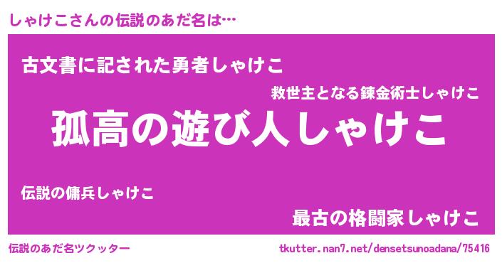 | 意味不明あだ名 | 『自称しゃけこ』『永久保存しゃけこ』 |