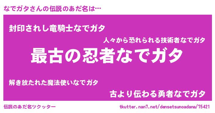 | 意味不明あだ名 | 『なでガタフォーエバー』『自称なでガタ』 |