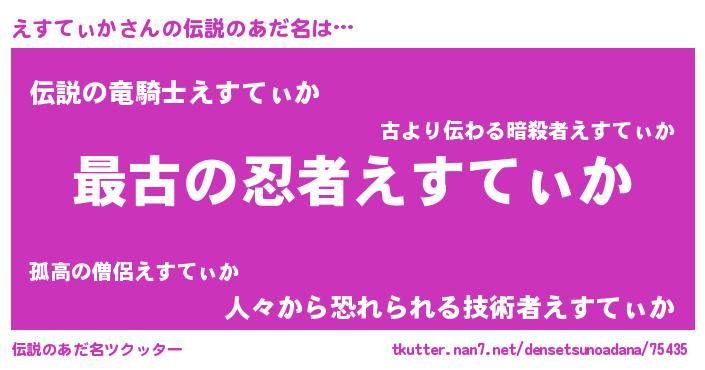 | ヒーロー風カッコイイあだ名 | 『仮面エスダー』『スーパーエスティカ』 |