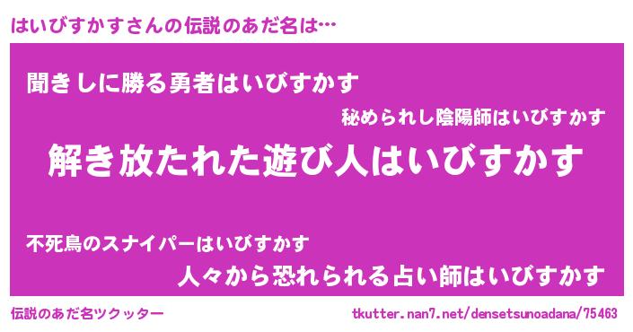 | 意味不明あだ名 | 『住所不定無職はいびすかす(91歳)』 |