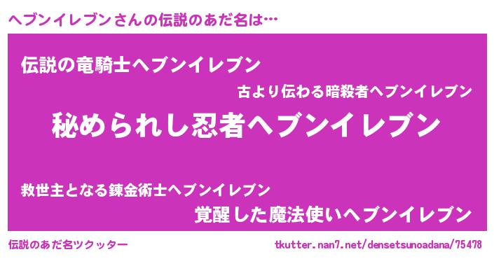 | 男性向けラノベタイトル風あだ名 | 『ヘブンイレブンスレイヤー』 |