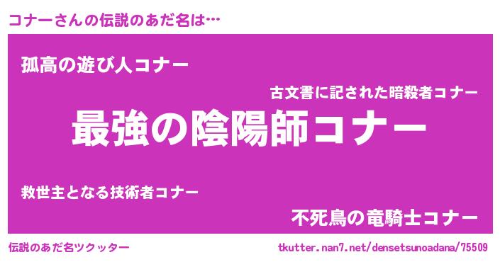 | ヒーロー風カッコイイあだ名 | 『ウルトラコナーマン』『暗黒騎士コナ』 |