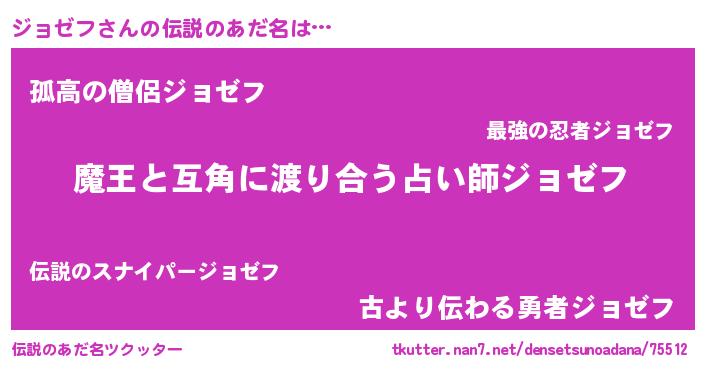 | 男性向けラノベタイトル風あだ名 | 『転生したらジョゼフだった件』 |