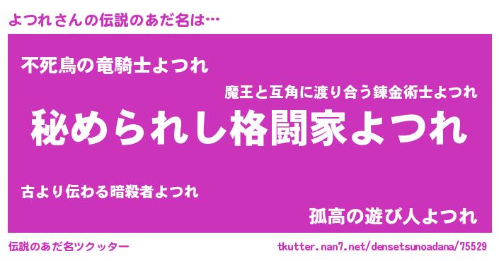 | ヒーロー風カッコイイあだ名 | 『超時空戦士ヨツレ』『スーパーヨツレ』 |