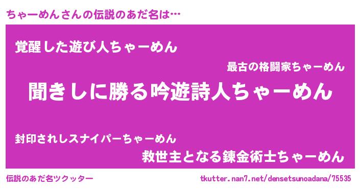 | 意味不明あだ名 | 『永久保存ちゃーめん』『自称ちゃーめん』 |