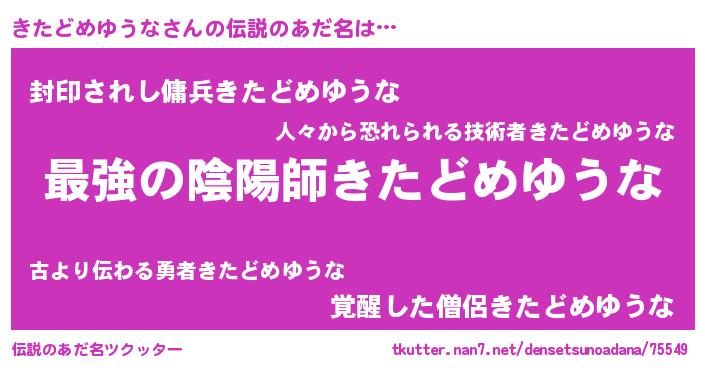 | 女子向けラノベタイトル風あだ名 | 『悪役きたどめゆうなに転生したようですが、知った事ではありません』 |
