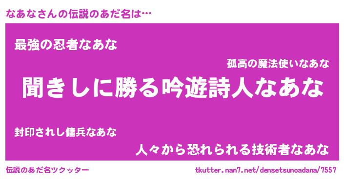 | 男性向けラノベタイトル風あだ名 | 『なあなという概念が存在しない退屈な世界 』 |
