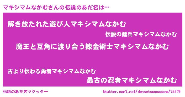 | 女子向けラノベタイトル風あだ名 | 『マキシマムなかむ恋絵巻』 |