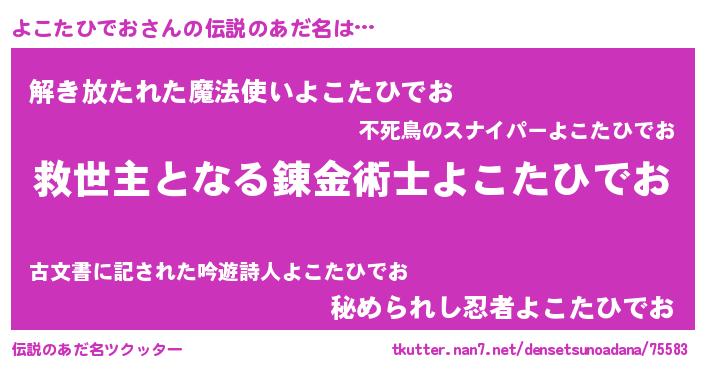 | ヒーロー風カッコイイあだ名 | 『天空の使者よこたひでお』 |