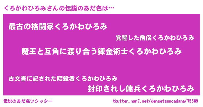 | 女子向けラノベタイトル風あだ名 | 『くろかわひろみ恋絵巻』 |