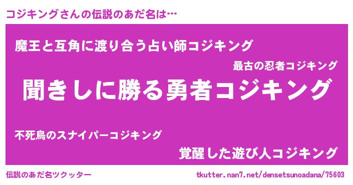 | ヒーロー風カッコイイあだ名 | 『仮面コジダー』『ネオコジキング』 |