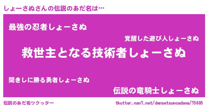 | 男性向けラノベタイトル風あだ名 | 『ノーゲーム・ノーショーサヌ』 |