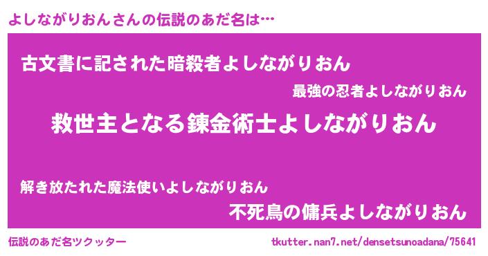| ヒーロー風カッコイイあだ名 | 『慈愛の使者よしながりおん』 |