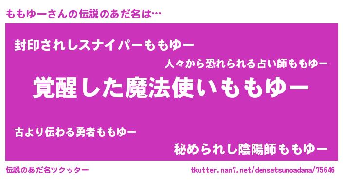 | 男性向けラノベタイトル風あだ名 | 『Re:ももゆーから始める異世界生活』 |