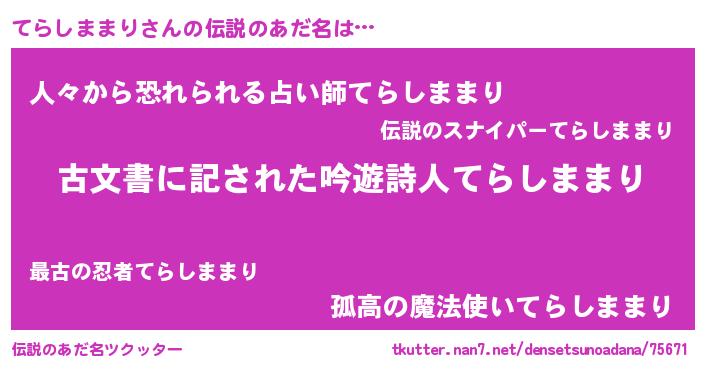 | 意味不明あだ名 | 『永久保存てらしままり』 |