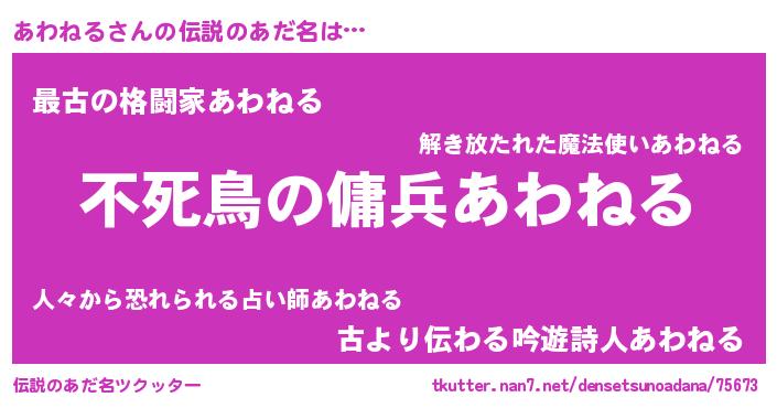 | 意味不明あだ名 | 『住所不定無職あわねる(68歳)』 |