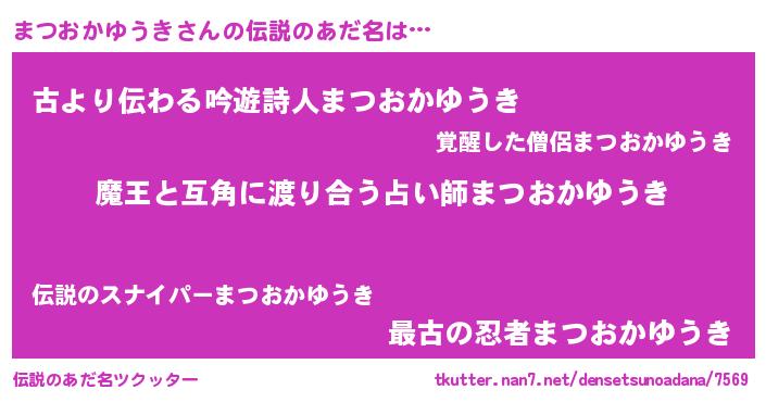 | ヘコむあだ名 | 『まつおかゆうき(爆)』『なまこ酢』 |