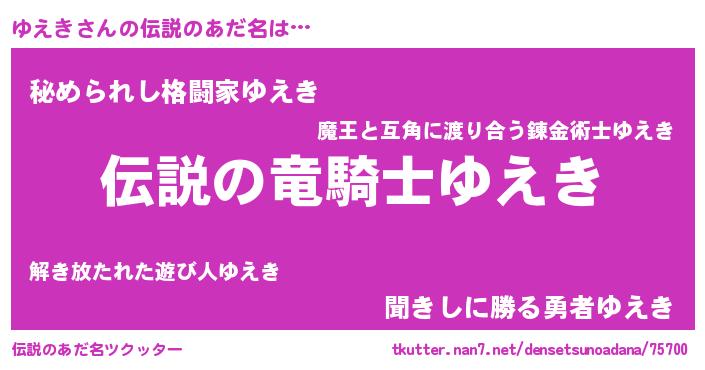 | 男性向けラノベタイトル風あだ名 | 『ゆえきの憂鬱』 |