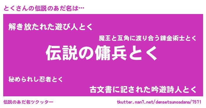 | ファンタジー風あだ名 | 『トクフェル』『ゼトクトゥ』 |