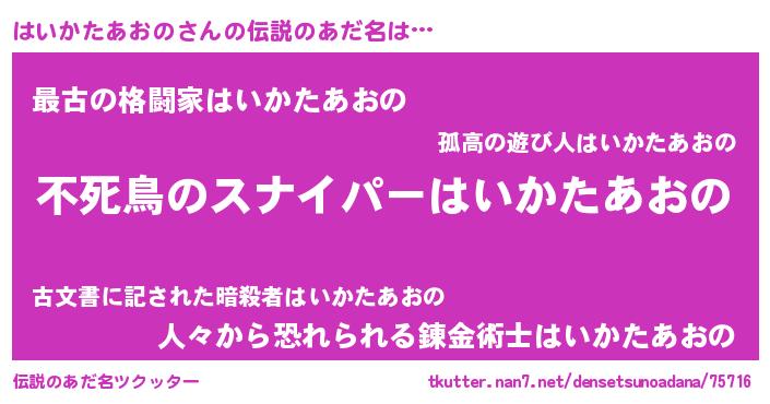 | 胡散臭い通販商品みたいなあだ名 | 『モテモテ間違いなし霊験あらたかなお札…その名も「はいかたあおの」』 |