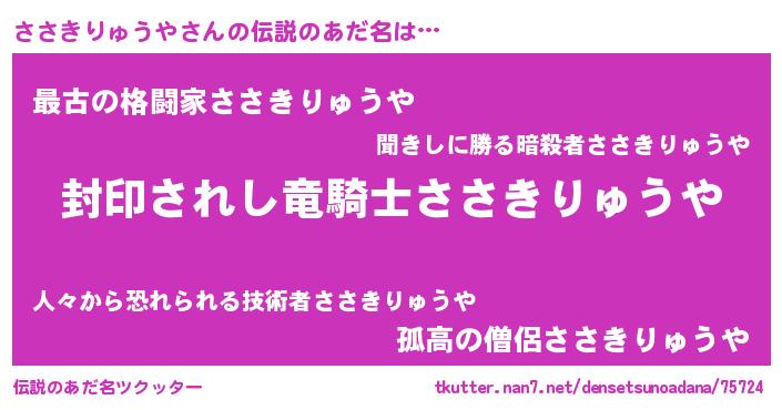 | 男性向けラノベタイトル風あだ名 | 『ササキリュウヤアートオンライン』 |