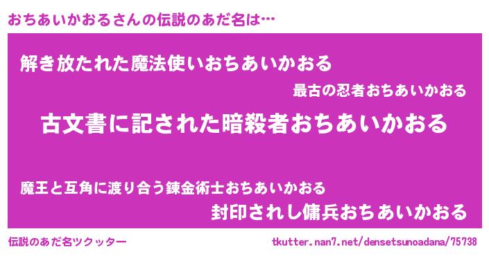 | 胡散臭い通販商品みたいなあだ名 | 『前代未聞の健康食品…その名も「おちあいかおる」』 |