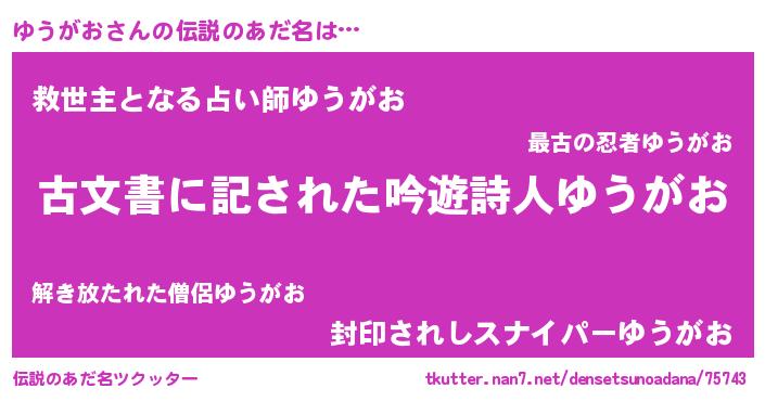 | ヒーロー風カッコイイあだ名 | 『ネオユウガオ』『仮面ユウダー』 |