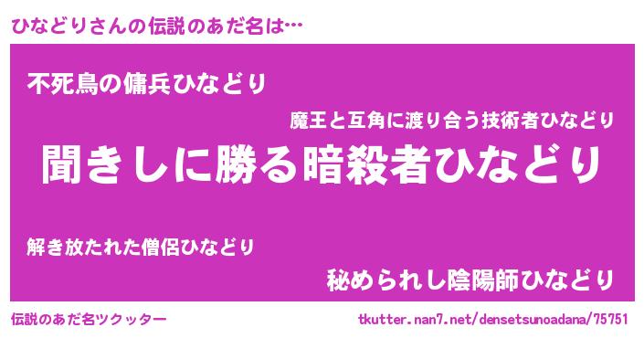| 意味不明あだ名 | 『自称ひなどり』『永久保存ひなどり』 |