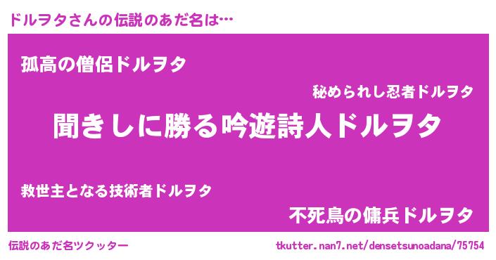 | 男性向けラノベタイトル風あだ名 | 『ドルヲタスレイヤー』『緋弾のドルヲタ』 |