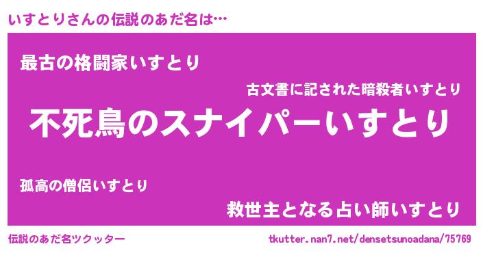 | 意味不明あだ名 | 『住所不定無職いすとり(84歳)』 |