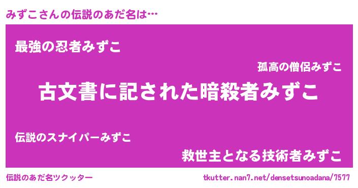 | ヒーロー風カッコイイあだ名 | 『究極戦士ミズコ』『ネオミズコ』 |
