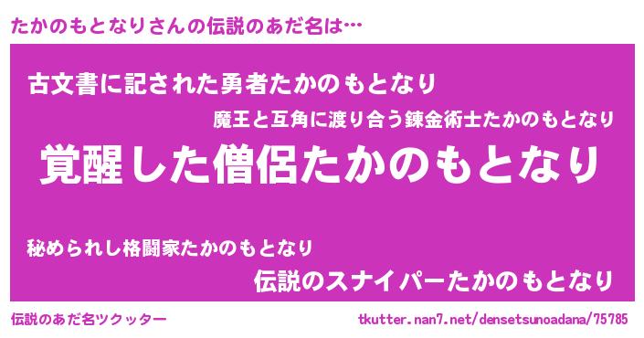 | ポケモン風あだ名 | 『ヒタカノモトナリ』『ゼニタカ』 |