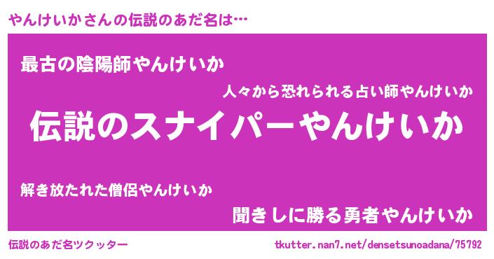 | ファンタジー風あだ名 | 『ヤンフェル』『エターナルヤンケイカー』 |