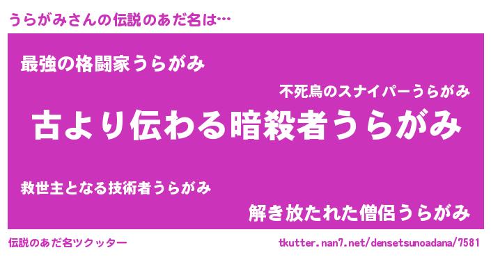 | ヒーロー風カッコイイあだ名 | 『ウルトラ戦士ウラガミ』『ネオウラガミ』 |