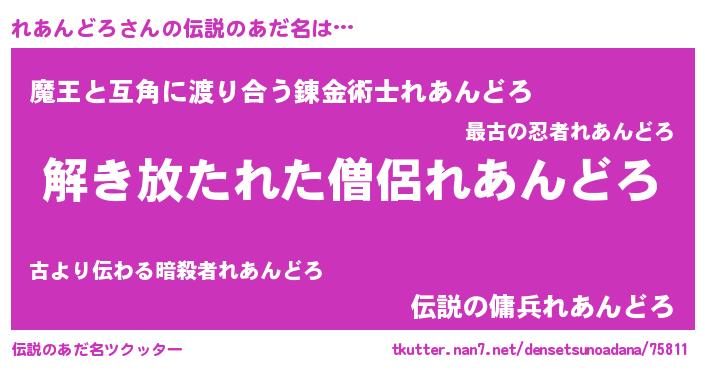 | 男性向けラノベタイトル風あだ名 | 『れあんどろの嫁は女の子じゃないと思った?』 |