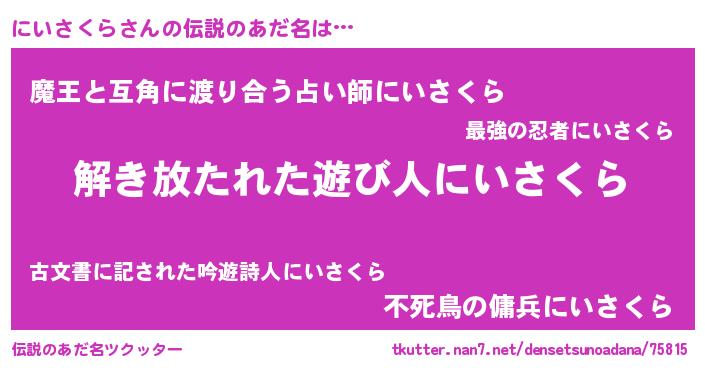 | 意味不明あだ名 | 『とにかく怪しいにいさくら』 |