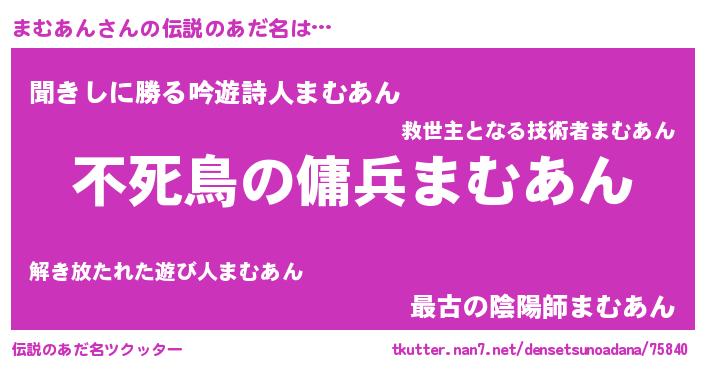 | 意味不明あだ名 | 『ペロリンまむあん』『自称まむあん』 |