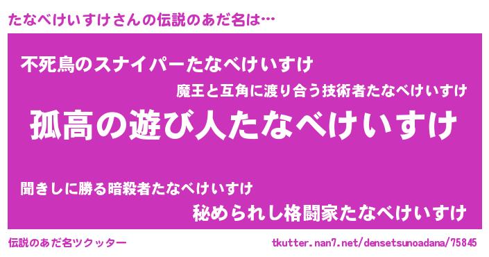 | 意味不明あだ名 | 『住所不定無職たなべけいすけ(74歳)』 |