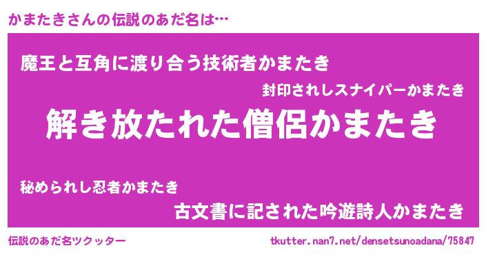 | 意味不明あだ名 | 『とにかく怪しいかまたき』 |