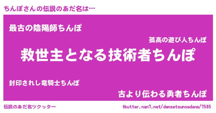 | ヒーロー風カッコイイあだ名 | 『最強戦士チンポ』『愛の使者ちんぽ』 |