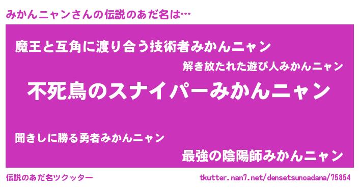 | ヒーロー風カッコイイあだ名 | 『サイバー戦士ミカンニャン』 |