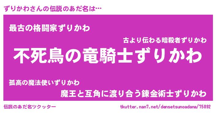 | ファンタジー風あだ名 | 『ズリフェル』『エターナルズリカワー』 |